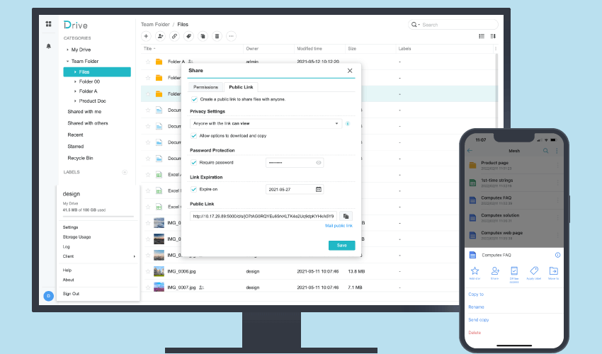 - Creates links for safe and secure file sharing with Synology Office integrated file management on a website.
