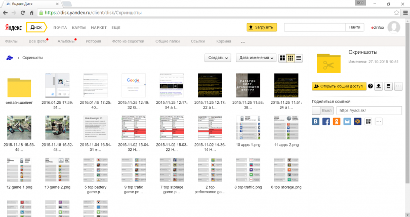 Скриншот веб-интерфейса Яндекс.Диска