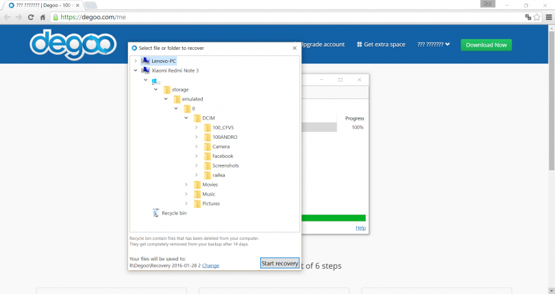 У Deego есть клиент для ПК, с помощью которого вы сможете сохранить нужные папки с вашего смартфона к себе на компьютер. Но работает этот клиент не самым лучшим образом, и для того чтобы с ним разобраться, понадобилось приличное количество человеко-часов нашей редакции. Впрочем, хочется верить, что в дальнейшем интерфейс будет усовершенствован и упрощён, а пока запоминайте полные пути до ваших фотографий и внимательно следите за тем, куда приложение сохраняет восстанавливаемые вами файлы. Возможно, что такой неудобный клиент для компьютера вышел из-за того, что облако Degoo стремится стать полностью мобильным, а приложение для ПК – это просто дань уважения старому режиму, и вскоре мы увидим ещё больше сервисов, независимых от ПК. Приложения работающие только с мобильными устройствами – первые ласточки прогресса, неумолимо отдаляющего нас от стационарных компьютеров.