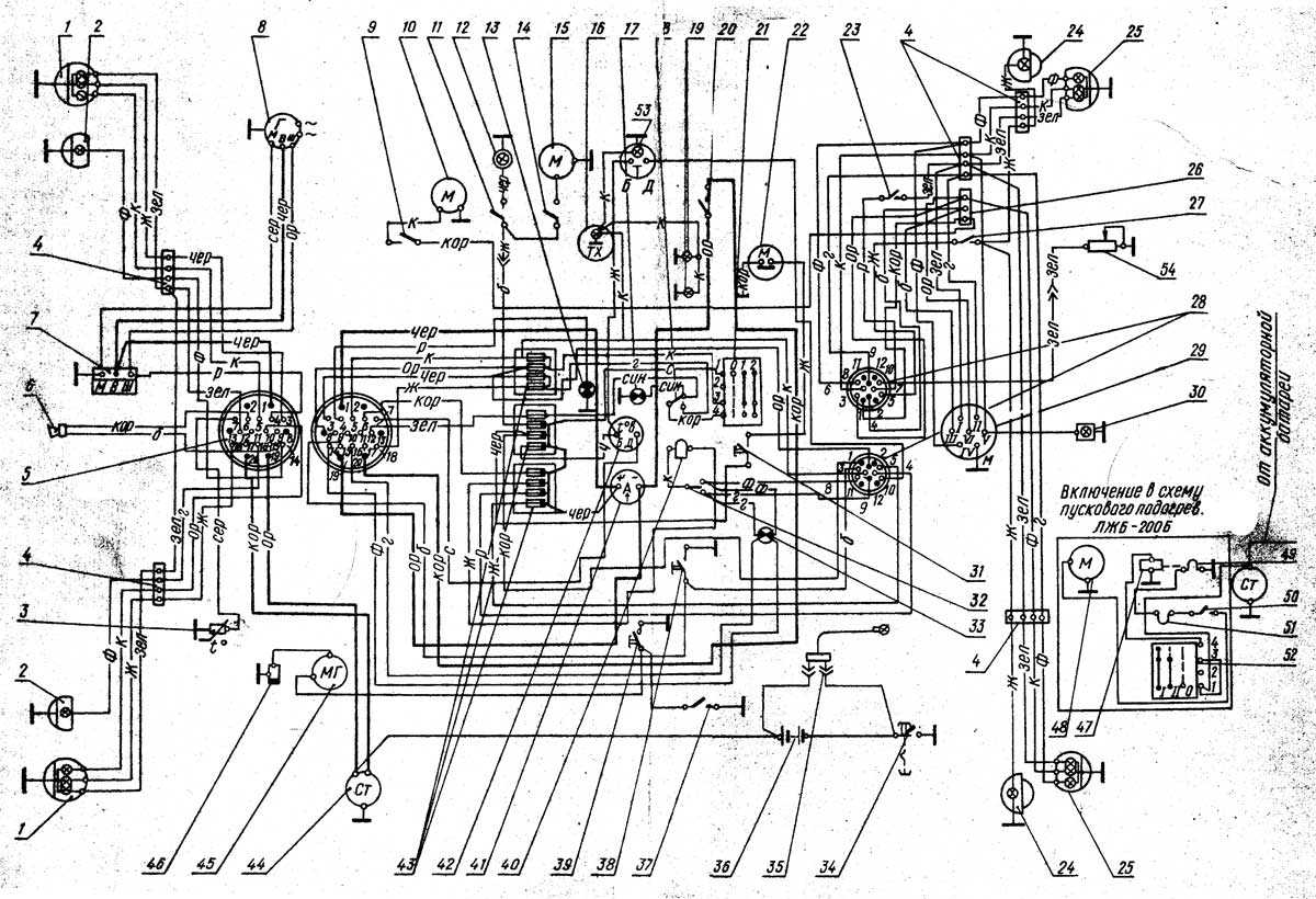 Обязательным элементом электрооборудования минских тракторов является стартер, включение которого осуществляет цветная схема. Стартер состоит из следующих элементов: