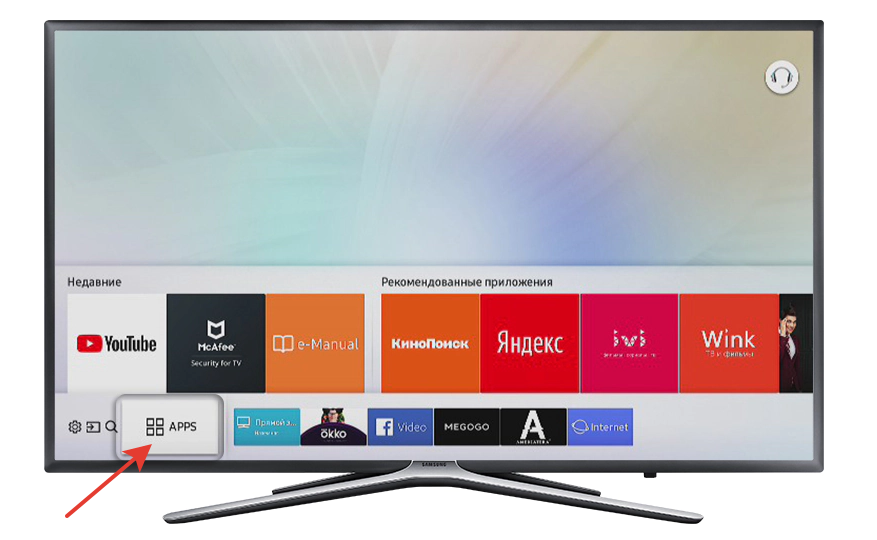 В новых моделях значки находятся в нижней части экрана и появляются на фоне трансляции. На первом плане недавно использованные и рекомендуемые программы. Остальные спрятаны в разделе Apps.