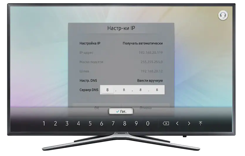 Для пункта «Настройки DNS» выберите значение «Ввести вручную» и впишите 8.8.8.8.