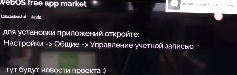 Теперь вместо «Управление учётной записью», Вы должны увидеть список приложений из «WebOS free app market»