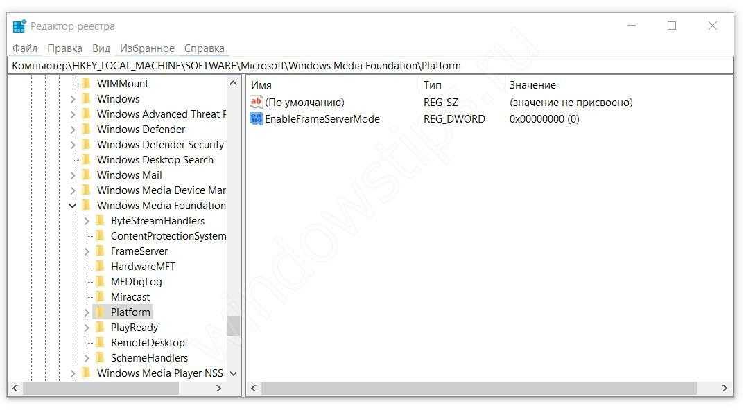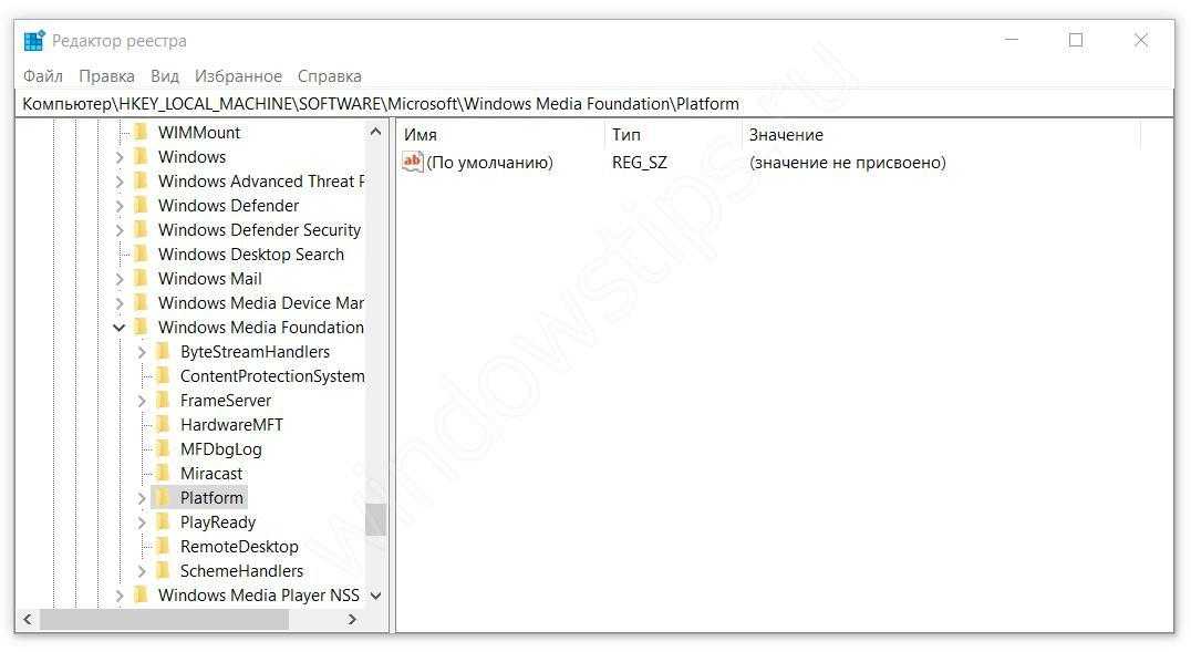 Перейдите в каталог HKLMSOFTWAREMicrosoftWindows Media FoundationPlatform;