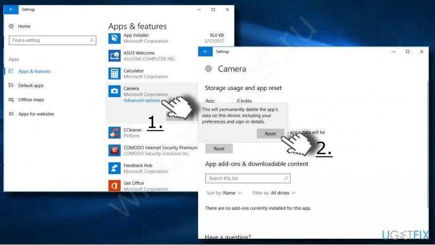Ошибка 0xa00f4271 Камера Windows 10 не работает может возникнуть из-за ошибки в приложении «Камера». Что для этого требуется: