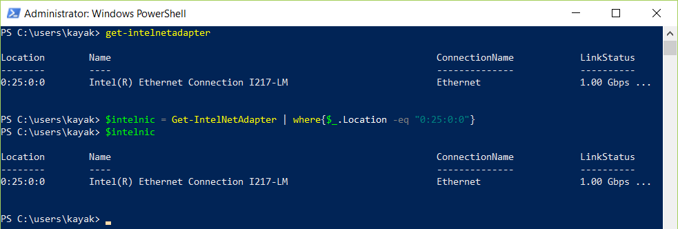 - Введите «Get-IntelNetAdapter», чтобы отобразить имя вашего сетевого адаптера.