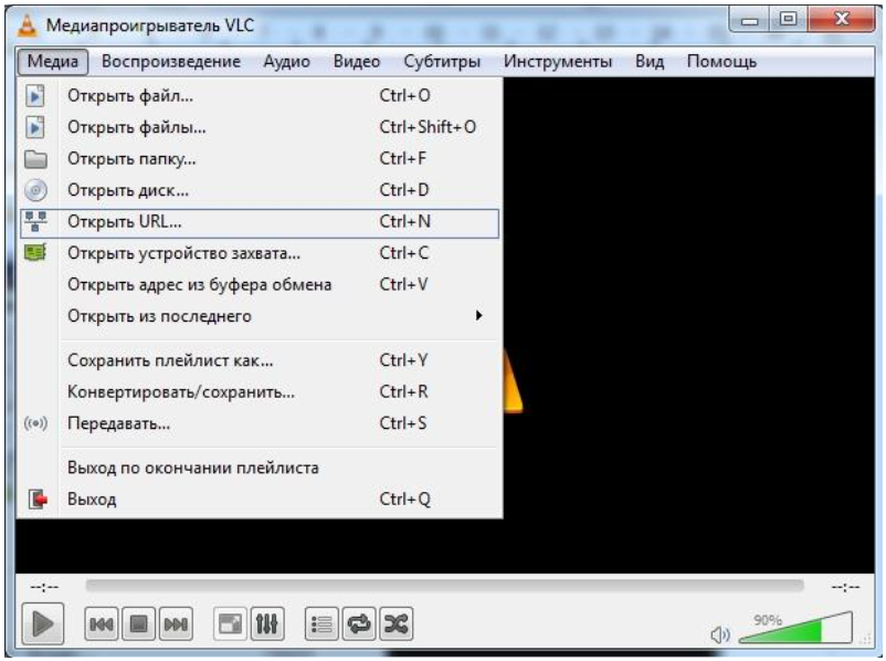 Сначала необходимо открыть медиапроигрыватель и нажать на пункт «Медиа».