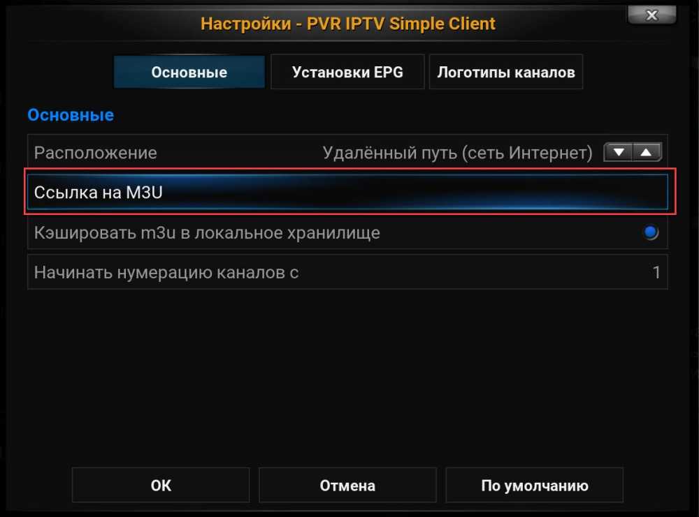 - В поле URL вставьте адрес вашей потоковой трансляции IPTV.