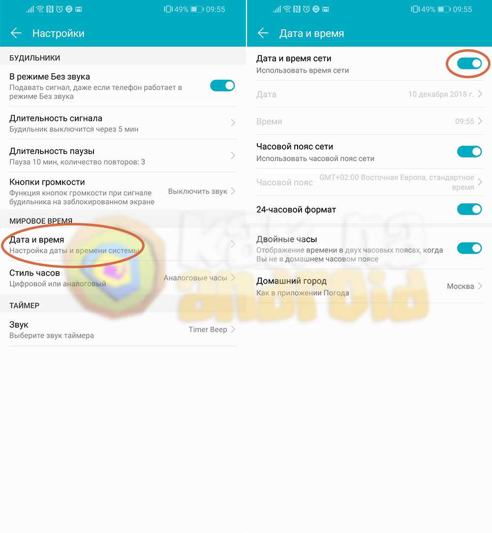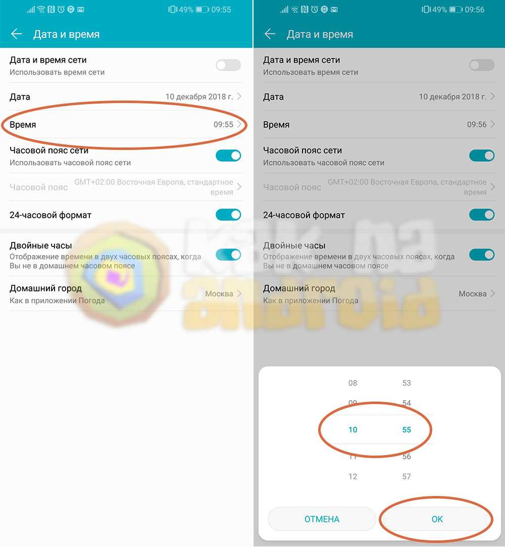 | Установка даты и времени мануально (вручную). | В этом случае вам понадобится перейти в настройки телефона, и самостоятельно установить часовой пояс, текущие дату и время на вашем гаджете. |