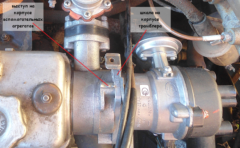 Совпадение меток означает, что регулировка системы зажигания проведена правильно.