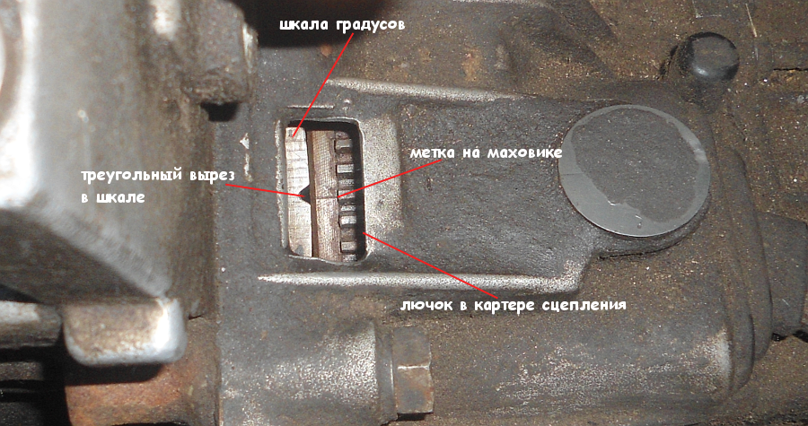 Проверка метки на маховике проводится по метке шкива коленвала.