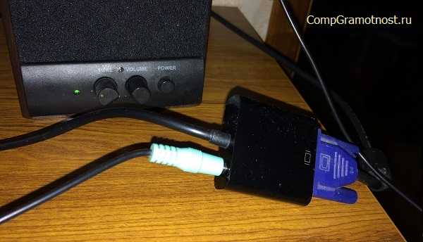 Рис. 7. Звуковые колонки подключены к переходнику HDMI-VGA – это последний шаг в подключении внешнего монитора к ноутбуку