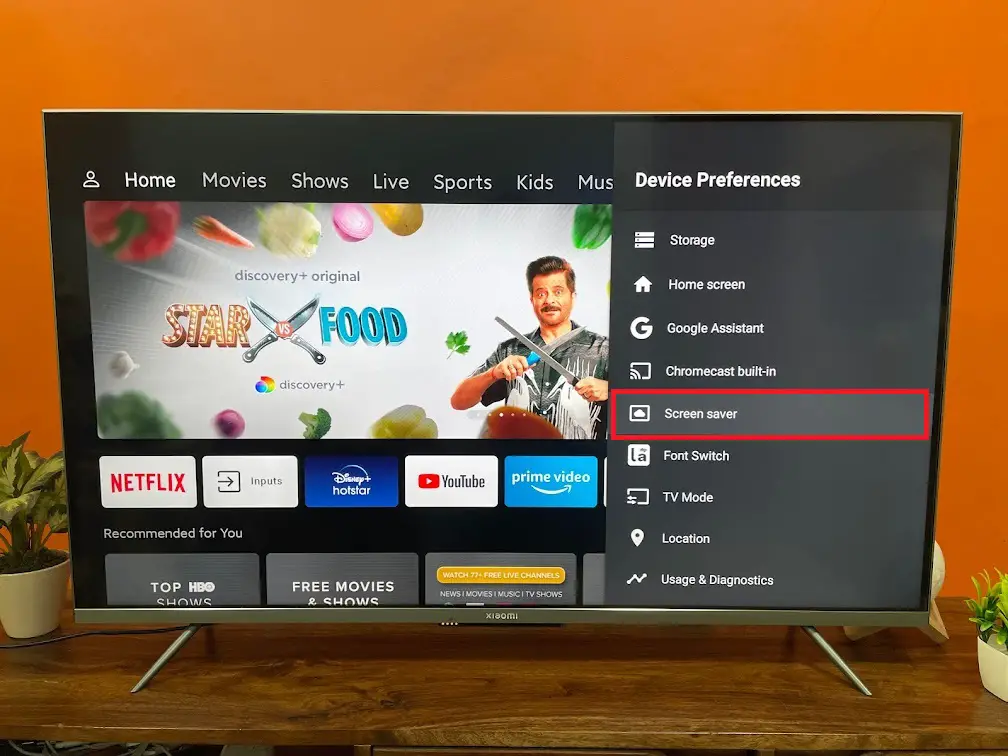 3. Затем выберите «Настройки устройства», прокрутите вниз и выберите «Заставка».