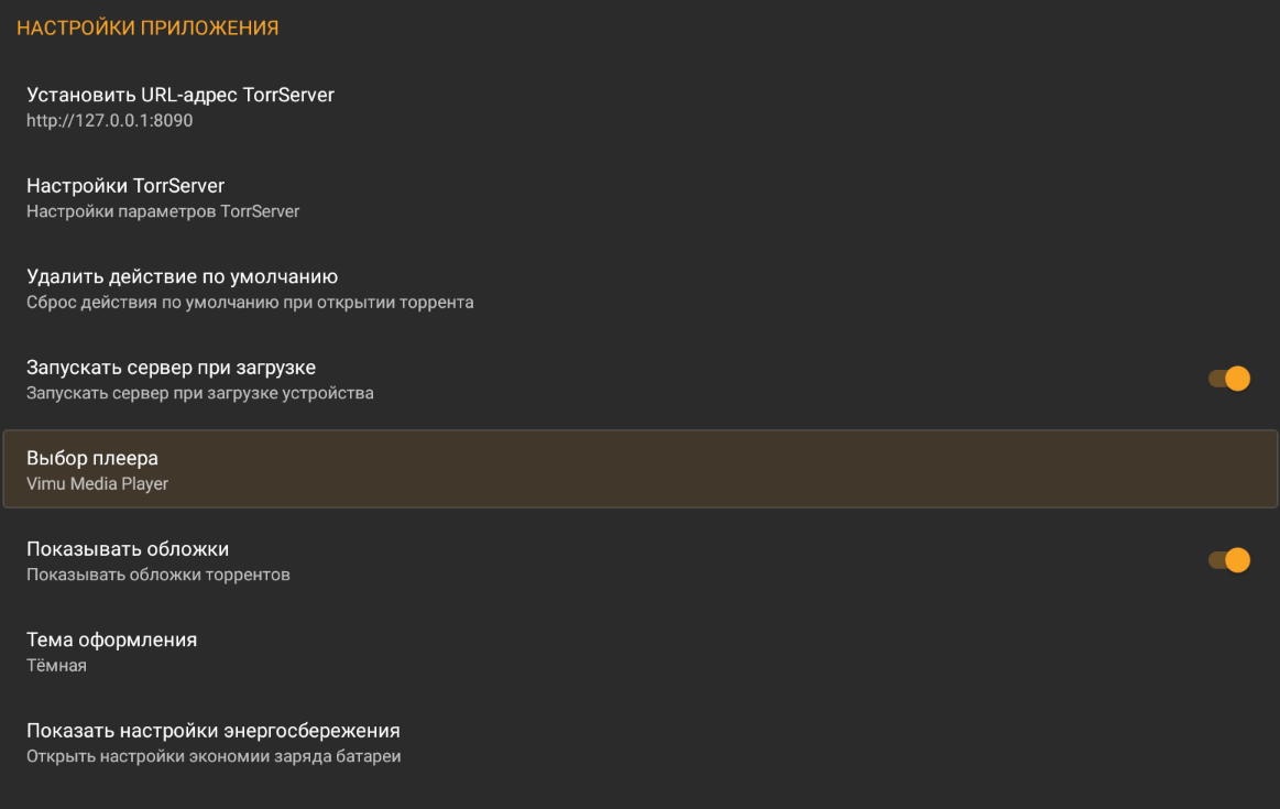 Установив плеер по умолчанию — закройте Torrserve и откройте программу каталог фильмов с торрентов. Например NUM — No Ui Movies.