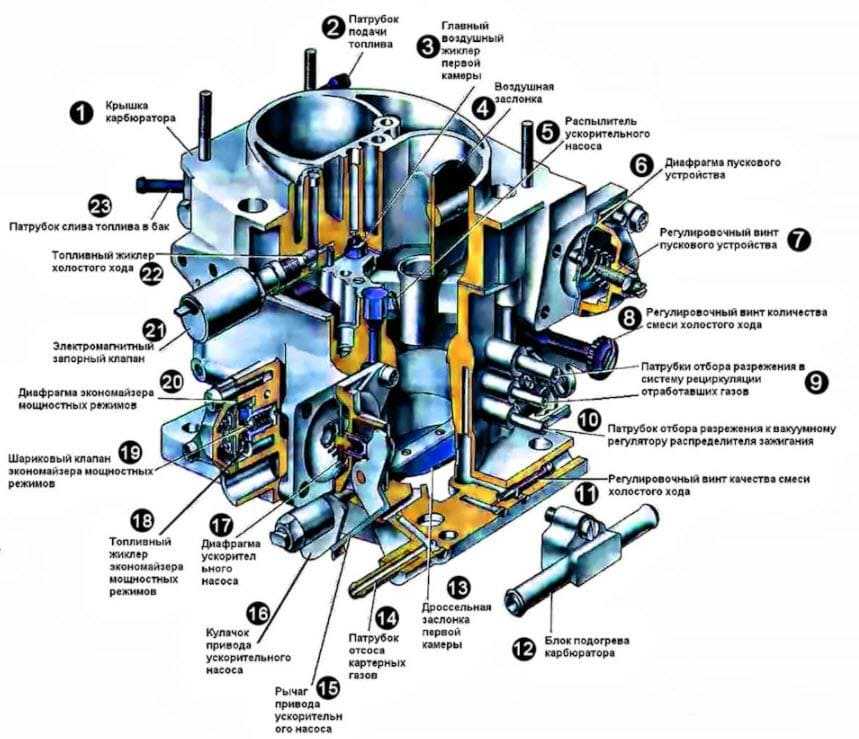 Солекс 21073 вместе со всеми модификациями состоит из следующих подсистем: