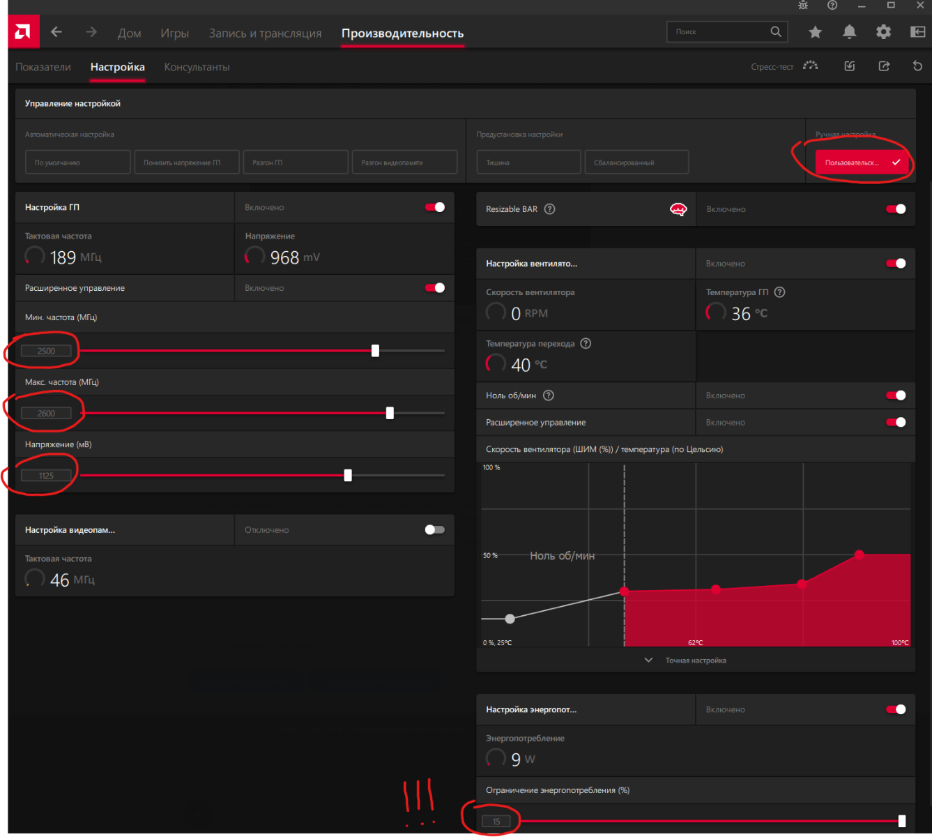 В программном обеспечении AMD Radeon вы можете настроить энергопотребление вашей видеокарты. Выберите баланс между производительностью и энергосбережением в соответствии с вашими потребностями.